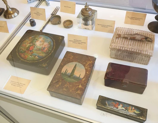 На постоянной основе действует небольшая выставка с нашей коллекцией украшений и предметов из белого и желтого металла периода царской России. Посещение по записи, по действующим тарифам учреждения.
